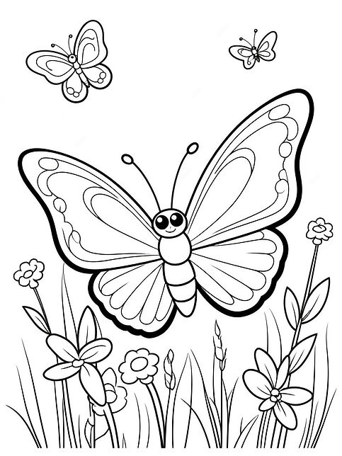 Butterflies are among the most beloved creatures in the natural world. Known for their transformation, elegance, and connection to the seasons, they symbolize growth, joy, and renewal. In this coloring page, children can bring the scene to life with soft pastels, bold rainbow hues, or any palette their imagination desires. The flowers below offer endless possibilities for color combinations, making this a perfect activity for both kids and adults.
